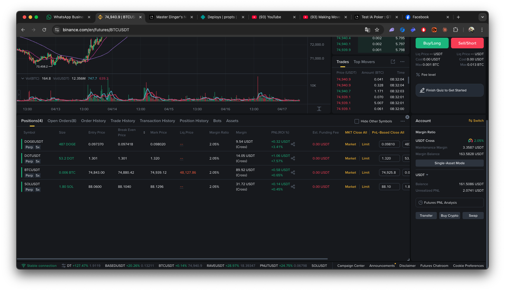 - Positions visible: open longs and shorts managed by the live executor